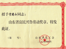 2009年4月,宋绪山被授予山东省富民兴鲁劳动奖章